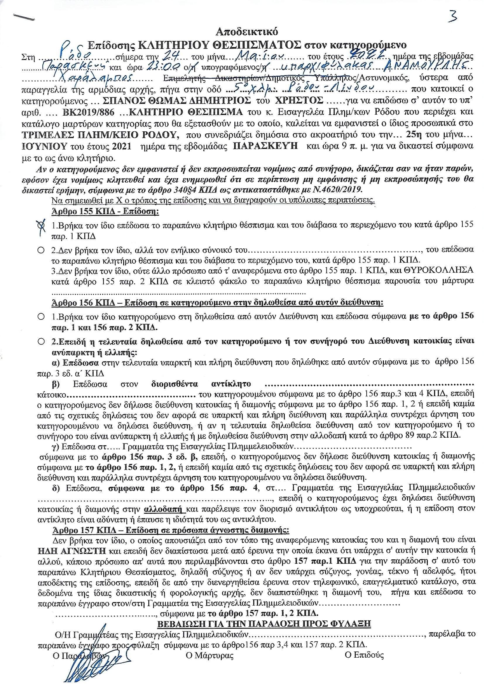 - Εισαγγελία Πρωτοδικών Ρόδου: 3309/25-06-2024 (σχετικό 21-10)