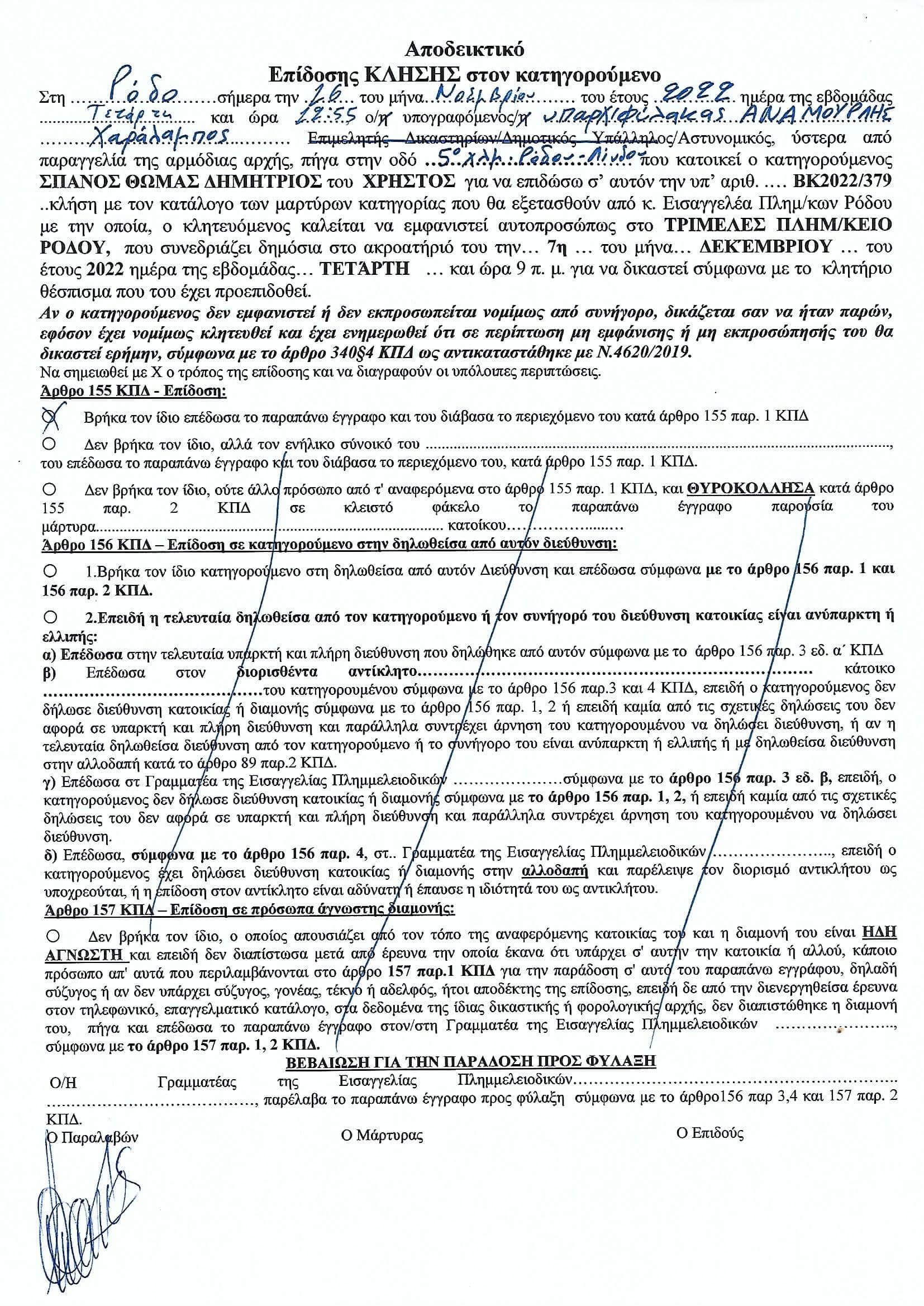 - Εισαγγελία Εφετών Δωδεκανήσου: 4086/25-06-2024 (σχετικό 21-08)