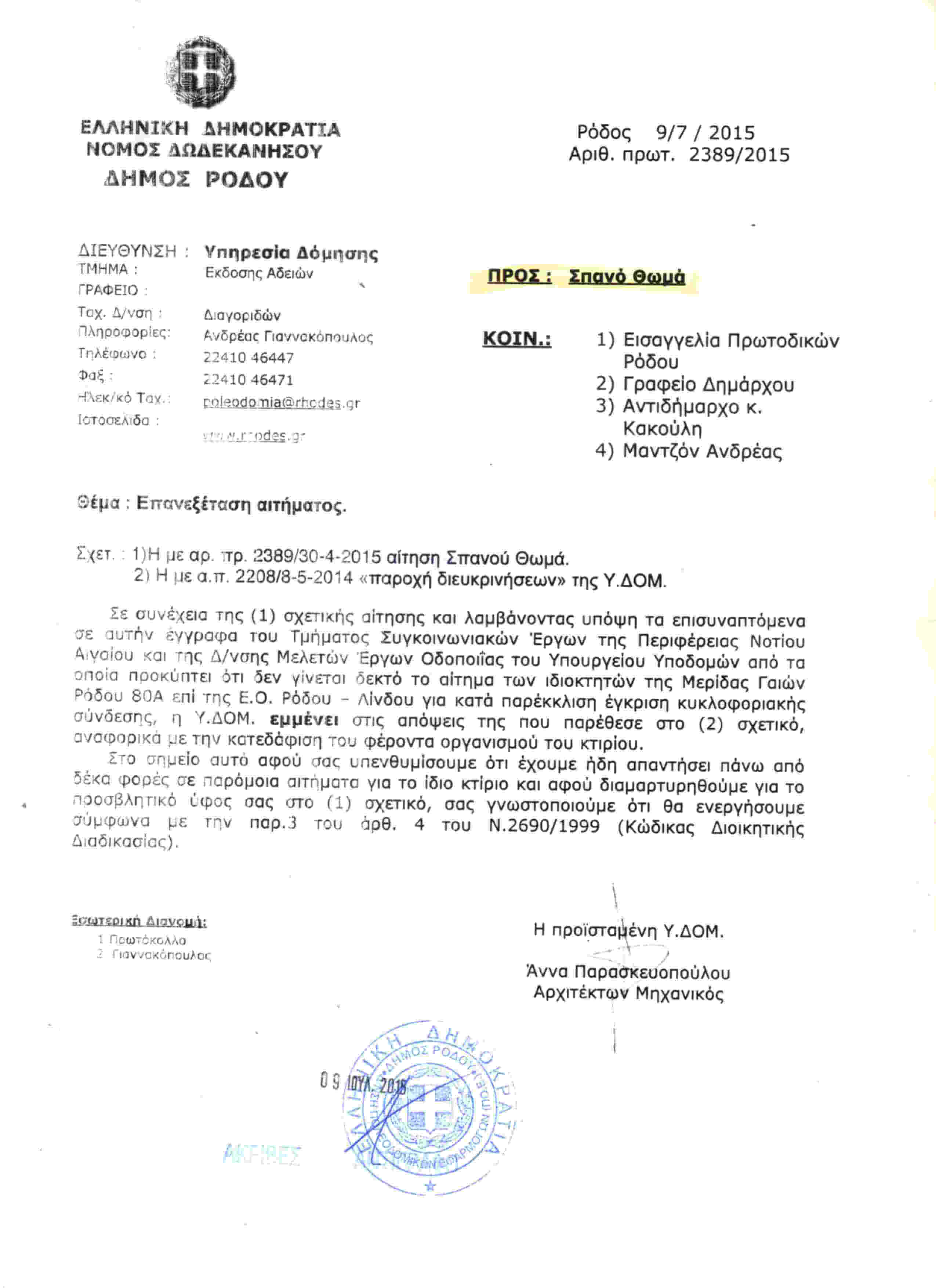 - Δήμος Ρόδου: 2-39595/19-06-2023 (σχετικό 24-09)